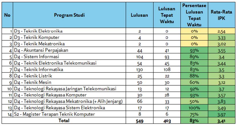 yang berasal dari 10 program studi D4 dan 1 program magister terapan dengan persentase