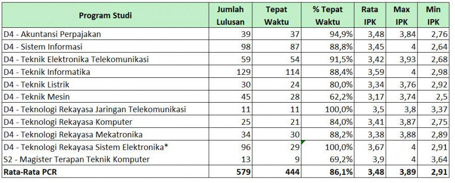 lulusan tepat waktu sebesar: 86,1%. Adapun rata-rata IPK Lulusan 2024 adalah 3,48.
