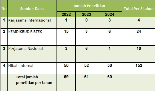 Pengelolaan Penelitian Dosen PCR saat ini masih tetap menggunakan BP2M management System yang dapat diakses pada https://bp2m.pcr.ac.id. Seluruh mekanisme proses hingga pelaksanaan penelitian terecord dalam sistem tersebut mulai dari pengusulan, penilaian awal, monitoring dan evaluasi (monev) hingga pelaporan dan penilaian akhir Pada tahun 2024, skema penelitian yang dibuka secara internal oleh BP2M terdiri dari skema penelitian dasar, terapan dan kolaborasi Perguruan Tinggi. Sementara dana penelitian pada tahun 2024 terdiri dari berbagai sumber yakni: hibah internal, hibah KEMDIKBUD-RISTEK, hibah kerjasama Internasional dan hibah kerjasama nasional. Gambar dibawah menunjukkan sumber pendanaan kegiatan penelitian pada tahun 2024 dan menunjukkan visualisasi data dalam 3 tahun.