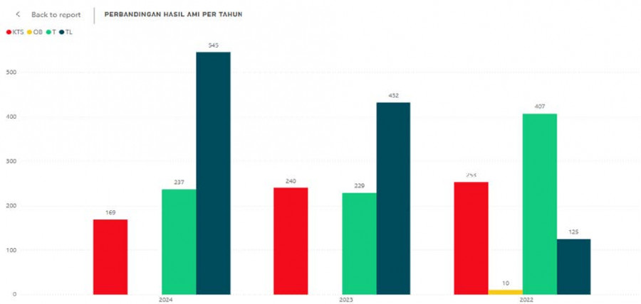 Pelaksanaan Audit Mutu Internal Non Akademik (AMINA) 2024 dilaksanakan pada tanggal 06-22 Januari 2025. AMI non-Akademik dilakukan pada 26 kelompok yang terdiri dari 15 Bagian/Unit dan 13 Program studi. Rangkaian kegiatan AMI dimulai dari pengisian Evaluasi diri oleh Wadir, Kepala Bagian/Unit, dan Ketua Program Studi. Berdasarkan hasil AMINA 2024 didapatkan tingkat ketercapaian (status hasil terpenuhi dan terlampaui) sebanyak 81.99% dan ketidaktercapaian 18,01%. Hal ini mengalami peningkatan dari tahun sebelumnya yang hanya ketercapaian capaiannya sebesar 73,72%. Berikut adalah hasil perbandingan capaian AMINA dari tahun 2022 hingga 2024.